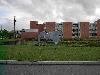 | These two shots are what I walk between on the way to and from my office every morning. The first shot is to my left on the way home yesterday. You can see the sky cleared up for bit. Apparently the ponds are part of the water treatment facility which is part of the Environmental Engineering school. You can see the school in the upper right corner of the picture (the white and green square building). Now a lot of the areas are being made into fisheries. Underneath that shot you see what I guess is a random pond they've decorated. It's pretty cool and the flowers smell great in the morning. On the right are a couple of shots of another random piece of art. If you look carefully in the bottom left picture, you can find this sculpture on the left side of the image. |