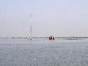 |  | We hopped off the boardwalk to enjoy the nice quiet beach. Eventually, Antonia and Francesca decided to brave the cold water and go for a swim. As you can see, it took them a try or three to finally get into the water. I decided to join them and we spent about an hour swimming around. As long |  | | as we stayed in the water we were warm, but when we got out we got a little cold so we decided to move out. At that point we split up again. Antonia and Ann went to explore some more of the trails, while Francesca and I decided to walk along the beach to try and hook up with the others who were already on the beach. In the picture on the right, you can see Francesca chasing ogg a flock of seaguls. I the background (in the water) is a remnant of an oil tanker that ran aground years ago. |
