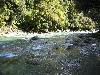 We stopped at several places on the way, as we saw things that looked interesting. We found Thunder Creek Falls first. Thunder Creek ends at this 28m (~92 ft) drop into the Haast River. What caught our eye was the intense color of the water. I climbed down the bank to the river before Jen found the formed path.